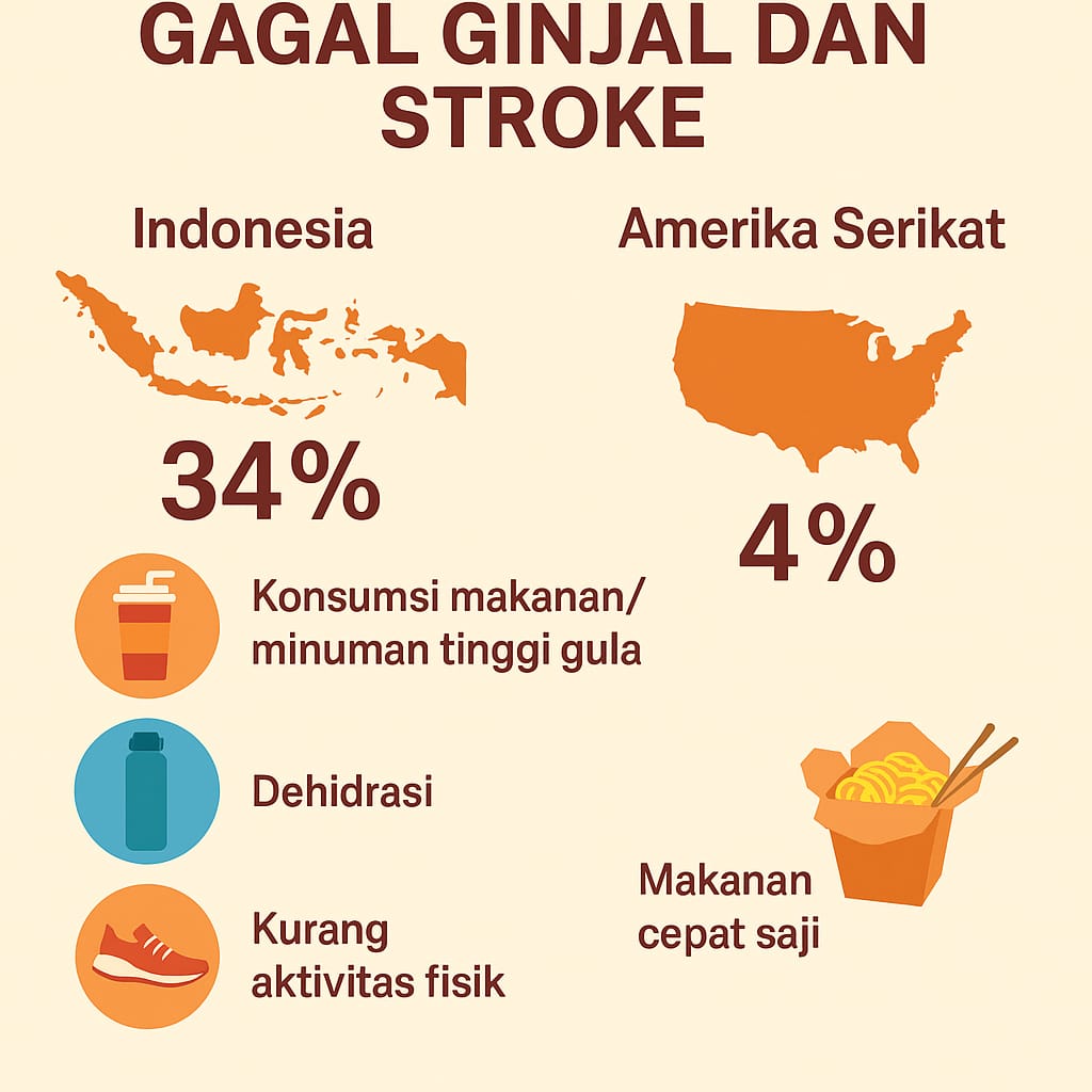 Kurangnya olahraga dan tekanan psikososial memperparah kondisi gizi dan metabolik → meningkatkan risiko stroke dan CKD.